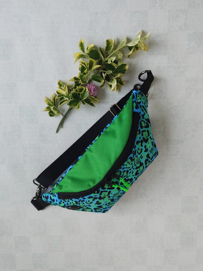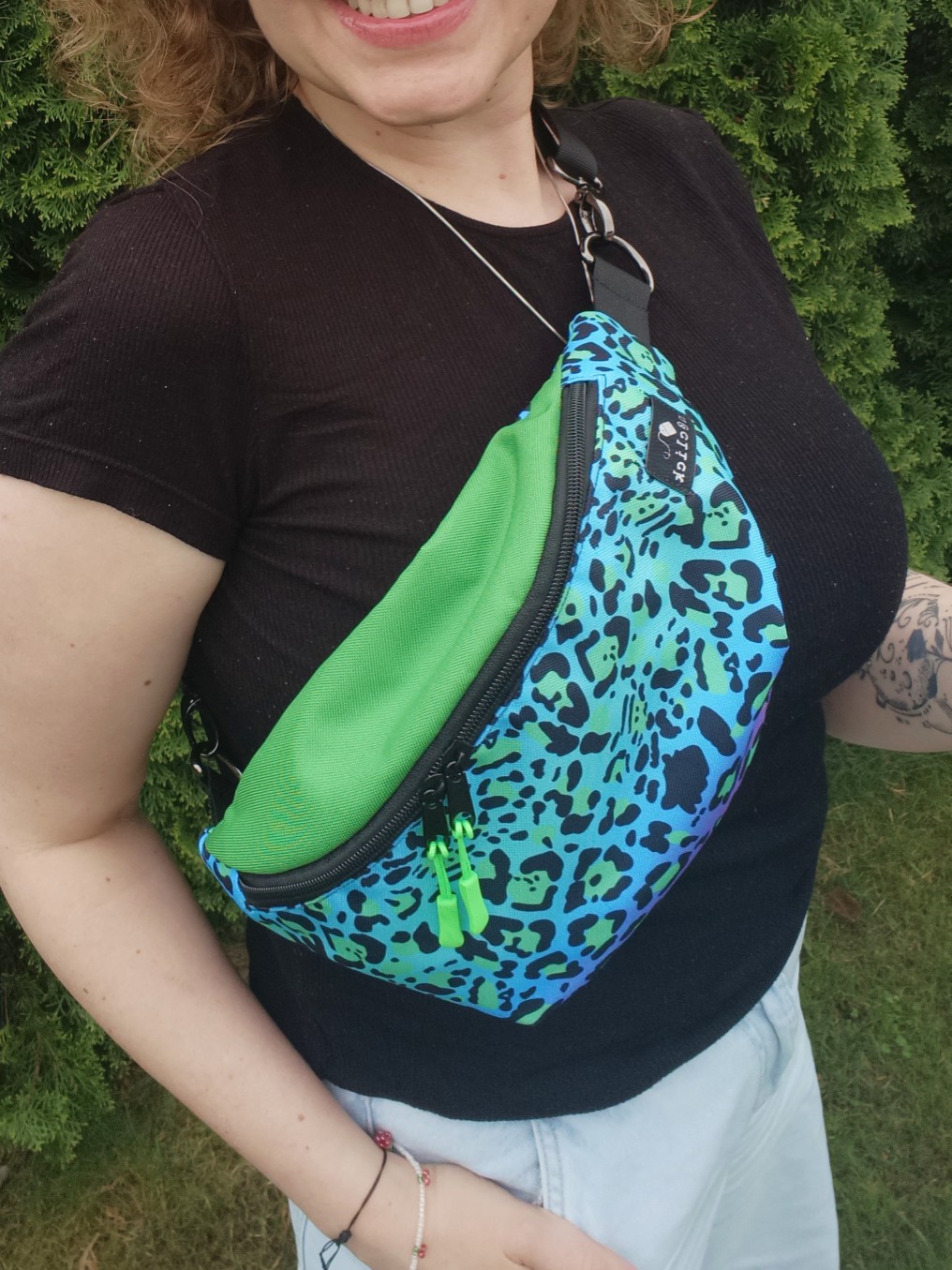 Nerka w rozmiarze L uszyta z tkaniny wodoodpornej Oxford. W zestawie dwa paski krótszy i dłuższy do noszenia na skos. W środku znajduje się również kieszeń zapinana na zamek błyskawiczny.